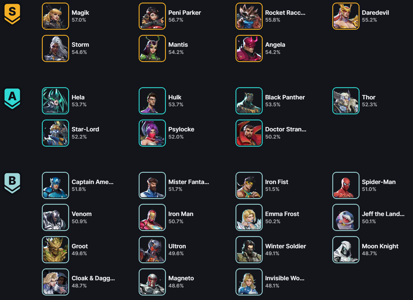 A-tier heroes in the list are reliable choices with strong kits, but they may need specific maps, team support, or better player skill. Many players climb successfully using A-tier picks in any marvel rivals tier list.